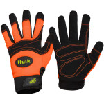 Spandex foam backed with "5+1" Hi-dexterity rubber injection system on hands & knuckle for Anti-impact protection. Premium durable synthetic leather palm, reinforced SBR padded + PVC patches on full palm & finger tips for excellent anti-vibration & anti-slip. Reinforced patch thumb crotch for added durability & protection. Neoprene cuff with adjustable rubber/velcro for the perfect fit, rubber name tag for identification, reflective band on wrist. Comply with EN388-4121